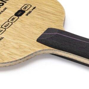 De yderste Limba-finérer giver en følsom boldkontakt og fremmer udviklingen af spin. Ayous-mellemlagene stabiliserer spilleegenskaberne og gør battets “sweet spot” større, mens den centrale Ayous-kerne sikrer en afbalanceret totalvægt og en kontrolleret grundhastighed.