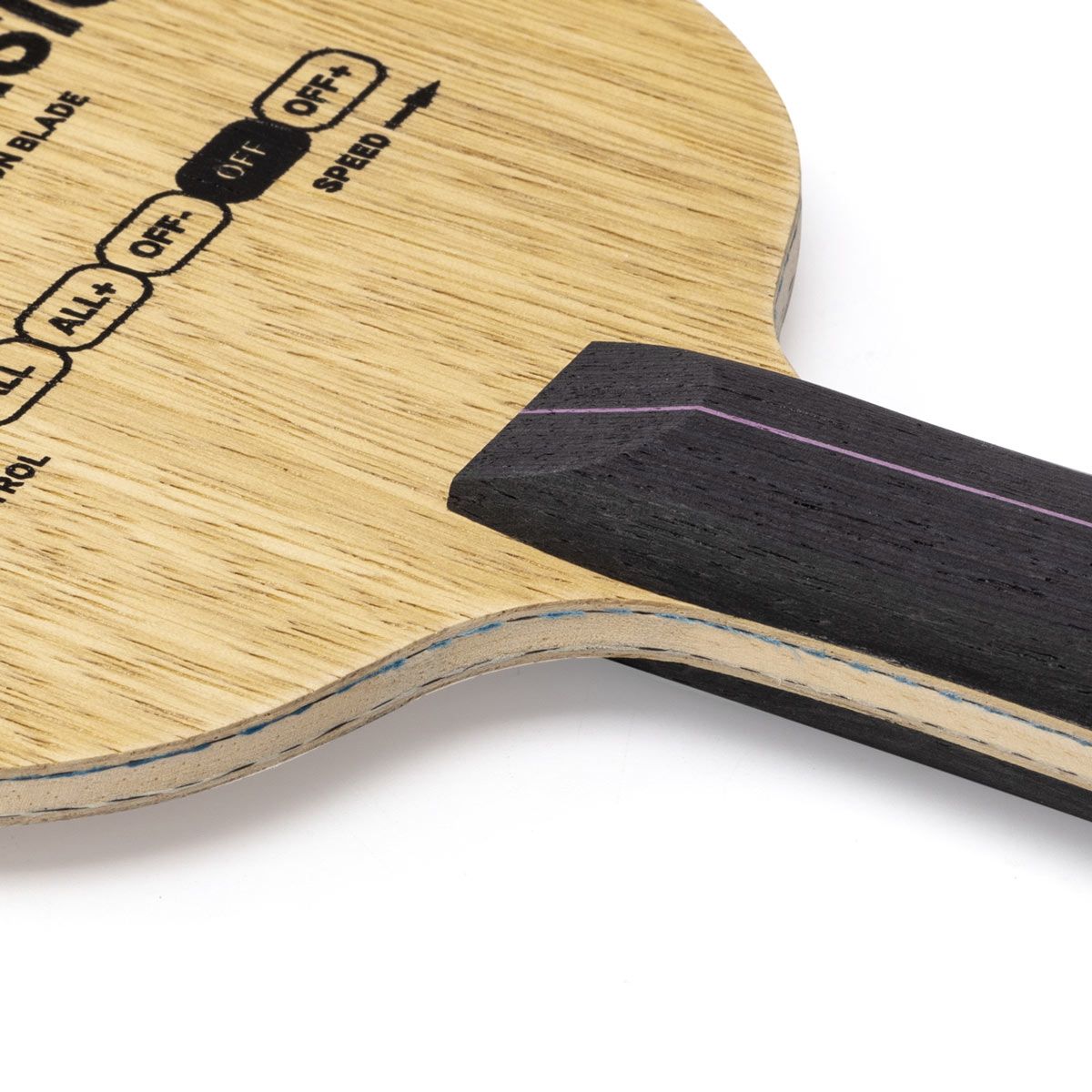 - Black Aramid Carbon (Baghånd): Giver en lidt mere direkte og stabil følelse med en fladere boldkurve – ideelt til præcise blokeringer, hurtige kontra-slag og kraftfulde baghåndsslag tæt på bordet.