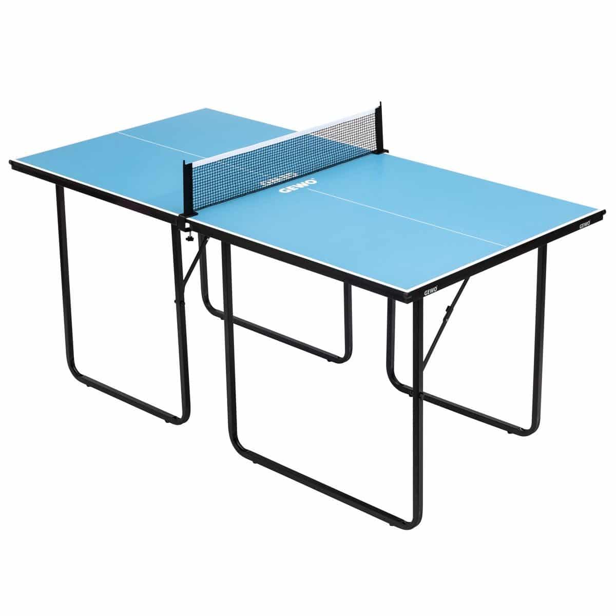 Den 12 mm MDF-plade med hvide banemarkeringer sikrer en god boldopspring. Takket være den stabile metalramme med pulverlakerede ben står bordet sikkert og er klar til brug med det samme – blot pak ud, monter nettet og begynd at spille!
