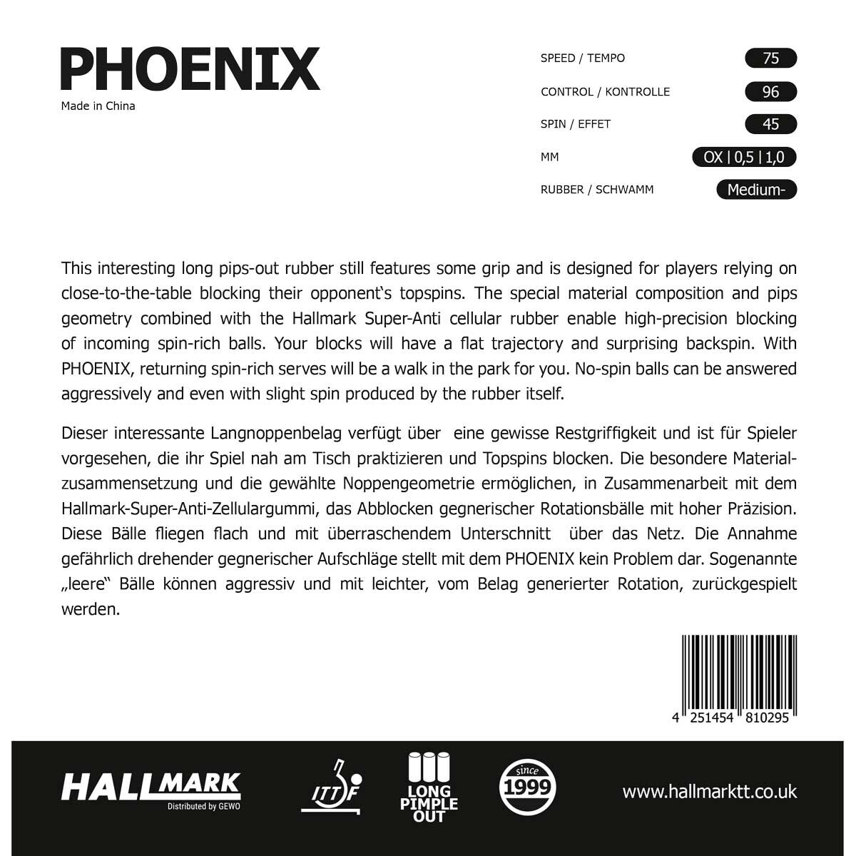 Denne interessante long pips-out-belægning har stadig en vis gribeevne og er designet til spillere, der satser på blokering tæt ved bordet mod modstanderens topspin. Den særlige materialekombination og knoppernes geometri, kombineret med Hallmarks Super-Anti cellegummi, muliggør præcis blokering af bolde med meget spin. Dine blokeringer vil få en flad bane og overraskende modspin.